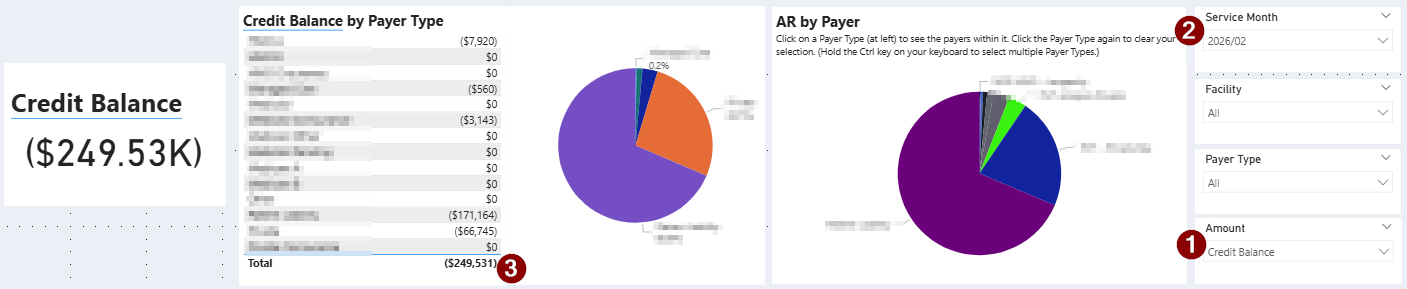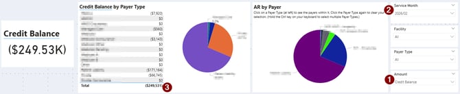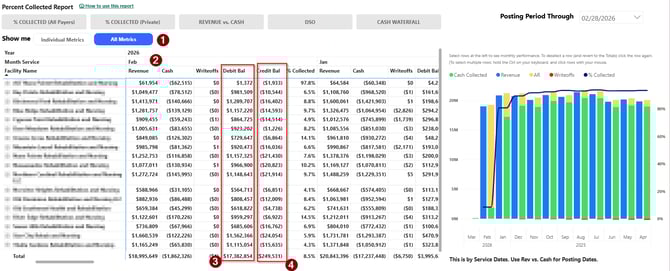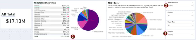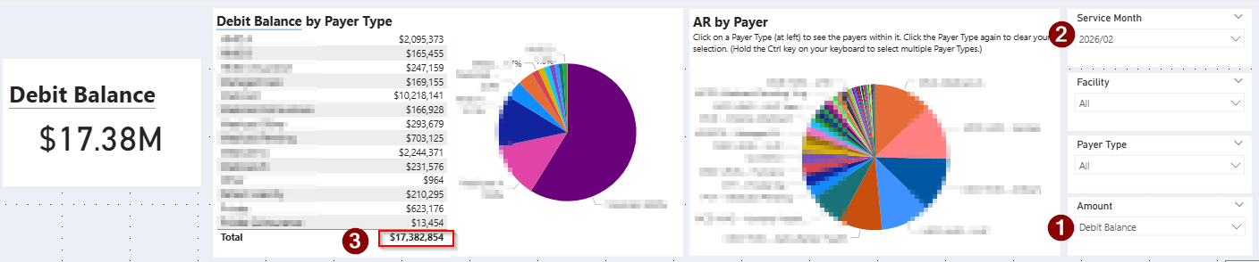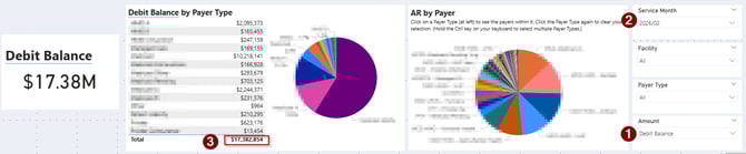 See your current Accounts Receivable balances and identify where outstanding debt is concentrated across your facilities and payers.
