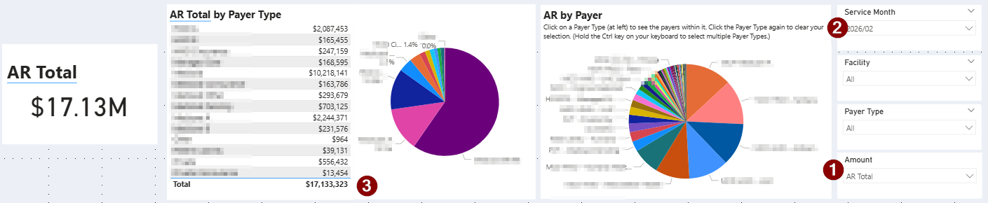 - The AR Report shows the current Accounts Receivable (AR) balance across facilities, payer types, and payers. It is intended to provide visibility into where AR is concentrated and help users monitor outstanding receivables within.