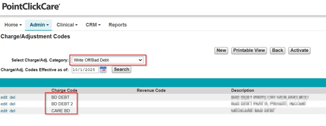 - Go to Admin > Setup, and under Billing Setup, select Charge/Adjustment Codes