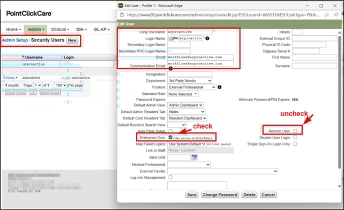 Note: from Dec 1, 2025 all PointClickCare customers must also supply a PCC DataRelay login to AR Proactive. After you complete the steps above, follow these steps to connect PCC DataRelay.