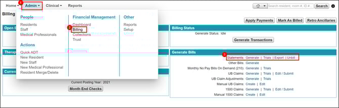 - our system will automatically fetch the bills waiting to be sent under Statements: Export.